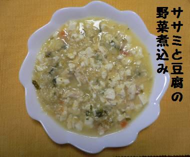 ・野菜を食べやすい大きさに切り 水煮し、溶き卵を入れる。(水の量は少なめ)